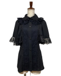 襟元から肩にかけてあしらわれたレースフリルが、顔まわりを華やかに。