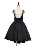 すっきりとした身頃から広がるスカートラインが美しいジャンパースカート。背面のベルトとリボンが程よいアクセントとなり、後ろ姿まで印象的に演出します。