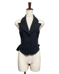 シャープな印象のテーラードカラーが目を引く、上品でクラシカルなベスト。程よく体に沿うシルエットに加え、バックはリボンで結ぶ仕様となっており、お好みに合わせてウエストラインを美しく調整していただけます。ボトムを選ばないコーディネートで幅広いコーディネートがお楽しみいただけます。